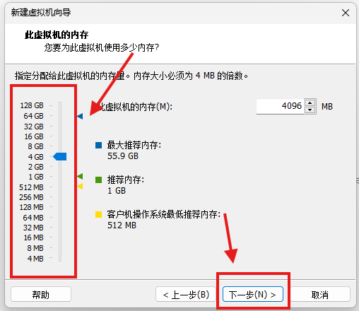 这里可以配置虚拟机的内存,根据自己的电脑的配置和需求可以进行适当的更改,默认是1GB的内存