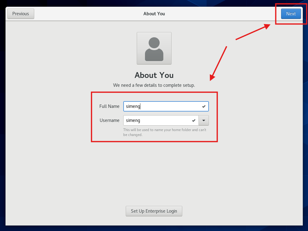 这里会创建一个自己的用户账号,然后点击下一步 Next (即可)