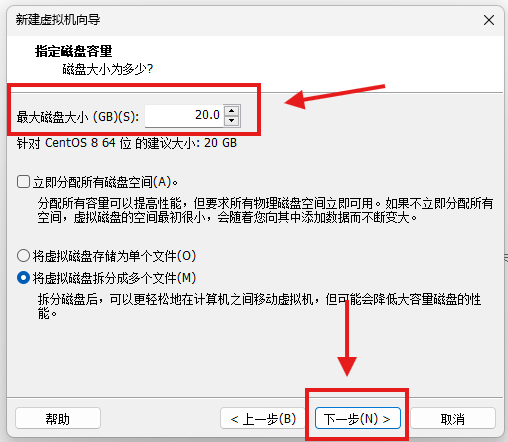 这里可以配置存储空间,建议根据自己的需求适当的增加,默认是20GB