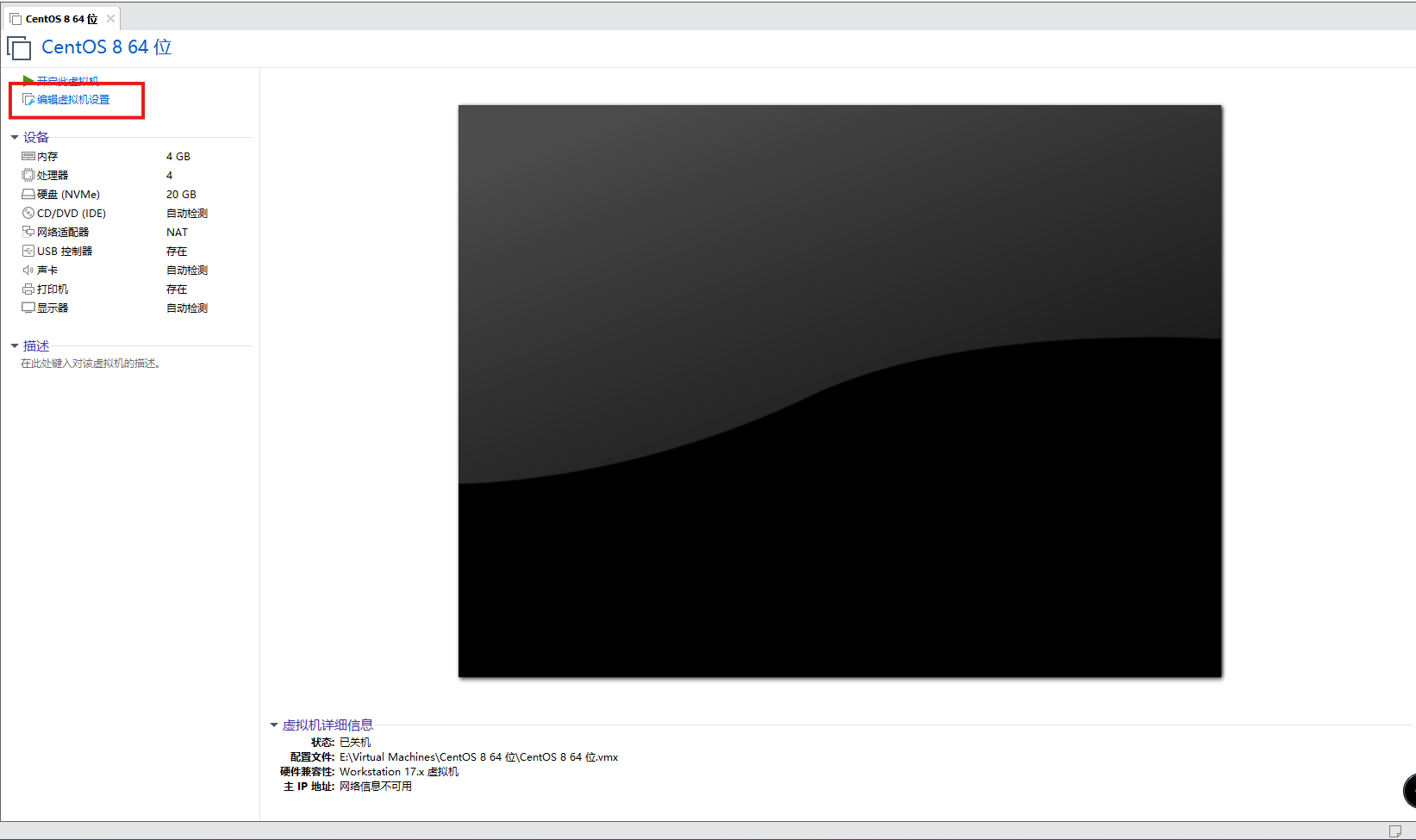 然后就可以看到我们刚刚创建的虚拟机,点击“编辑虚拟机设置”