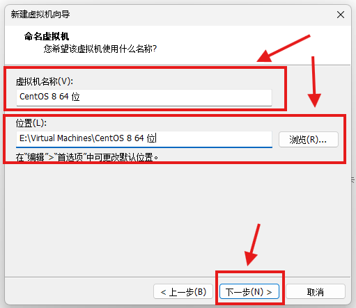这里可以指定虚拟机的名称和虚拟机的安装位置,按照自己的需求来填写即可