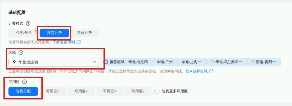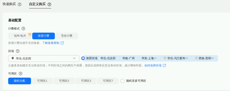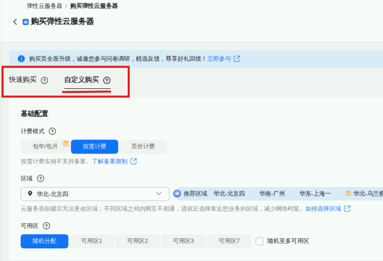 这里如果没有看到可用区,应该是选择了快速购买,改为自定义购买即可