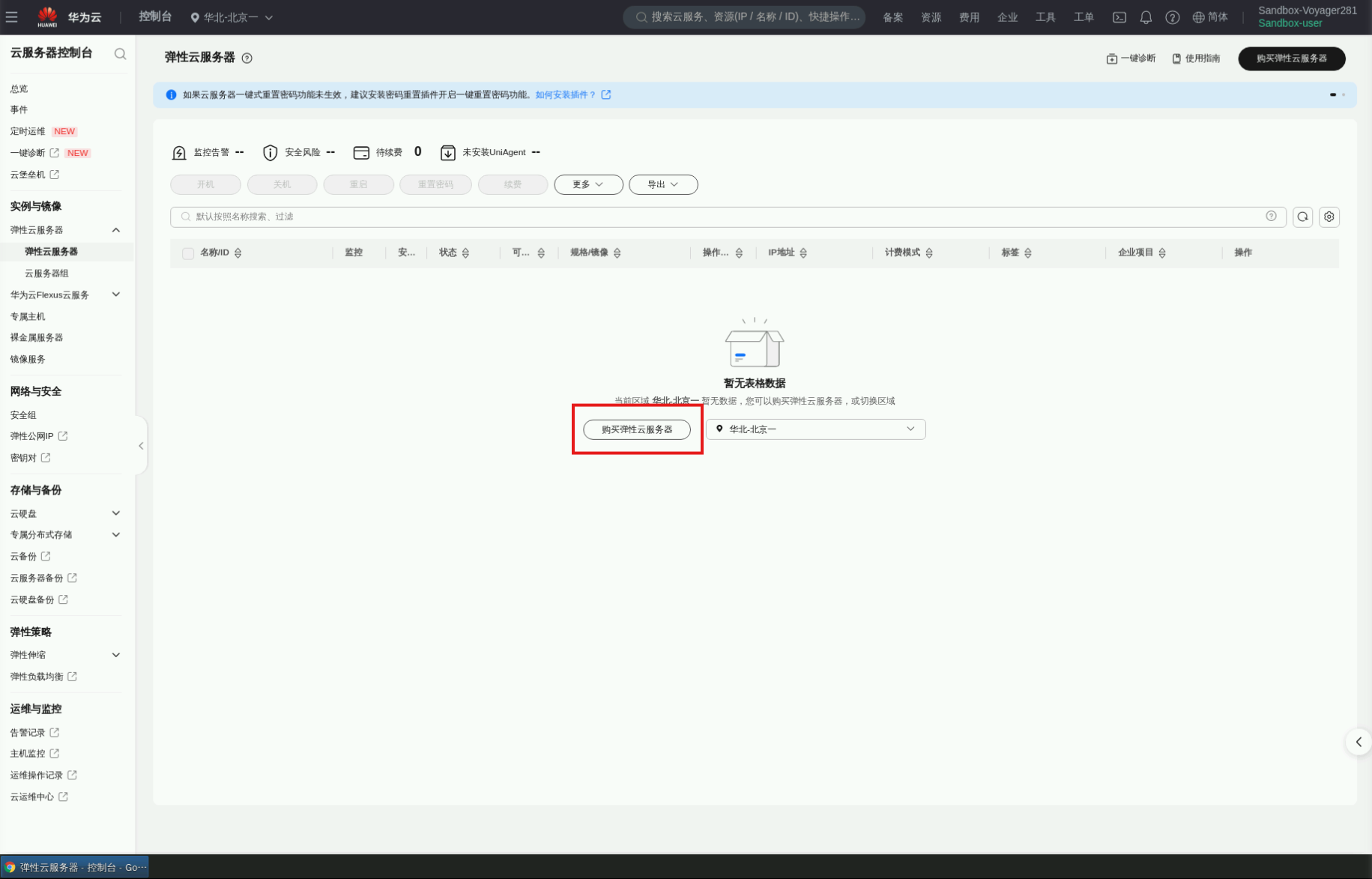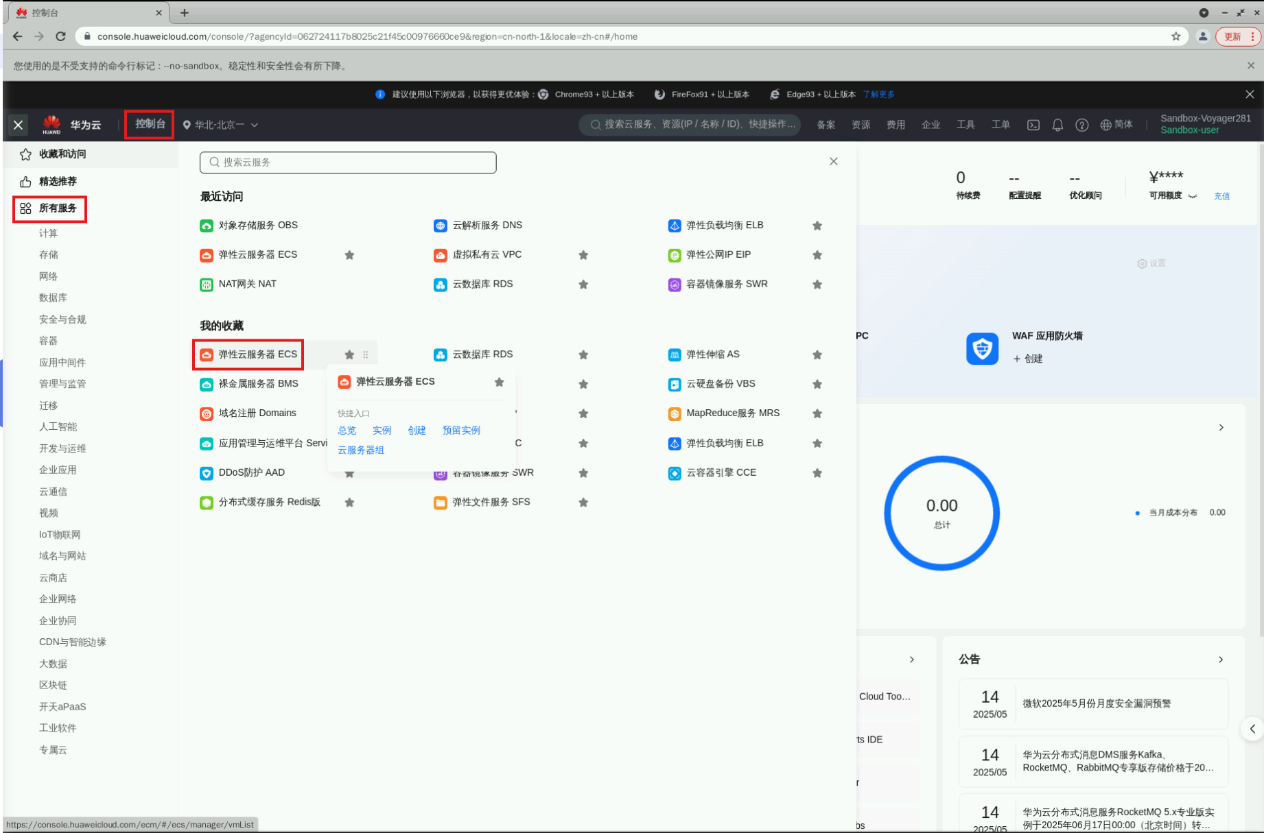 控制台 -> 所有服务 -> 弹性云服务器ECS