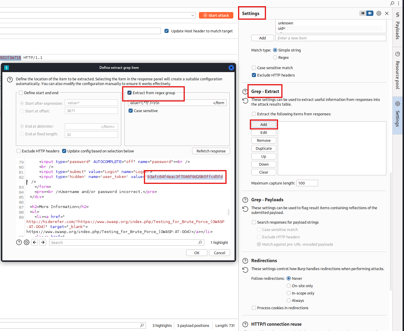 如图所示,在 Settings 中选择Grep - Extract,在代码中找到 token,记得这个时候顺手复制一下 token
