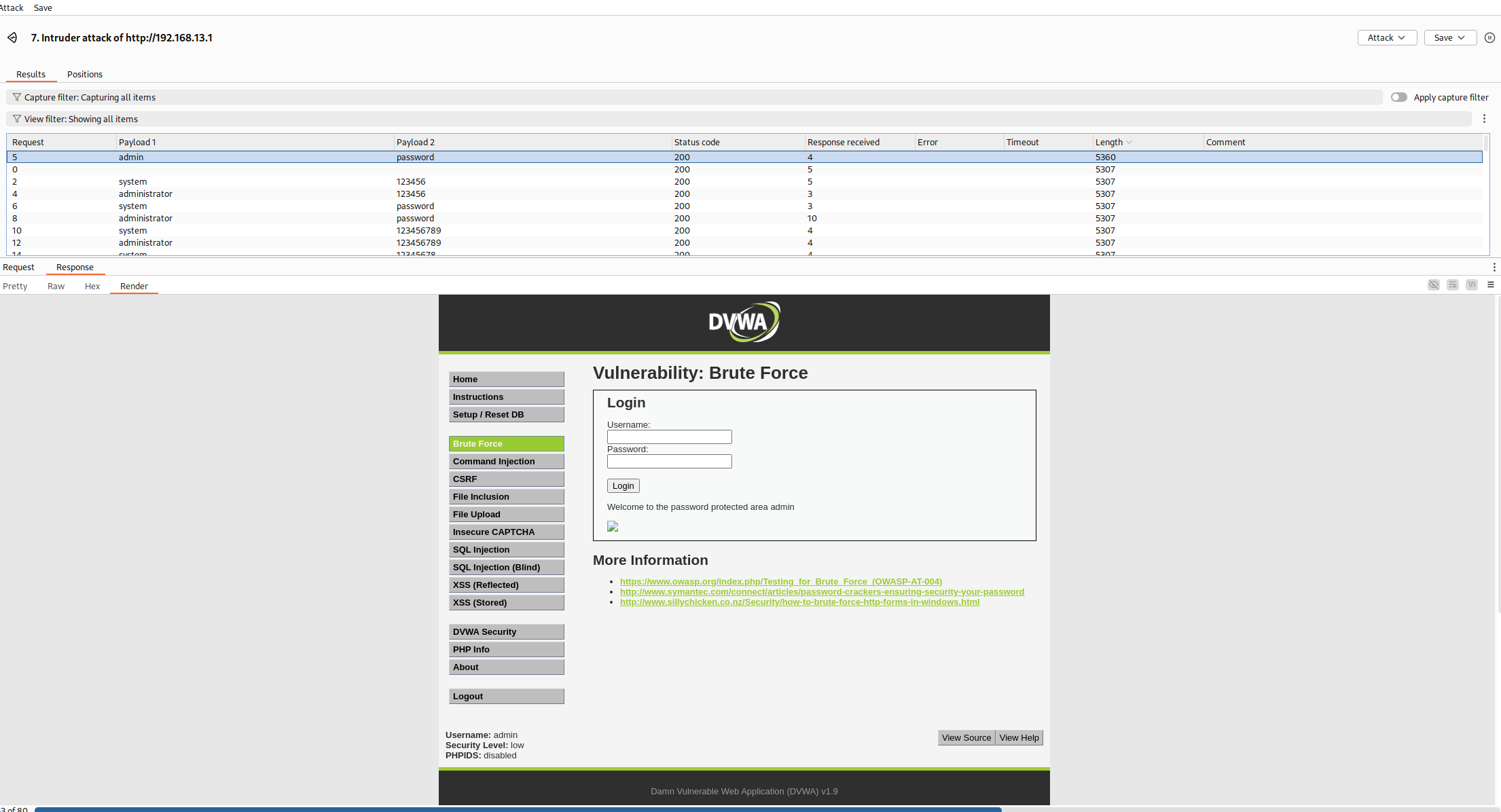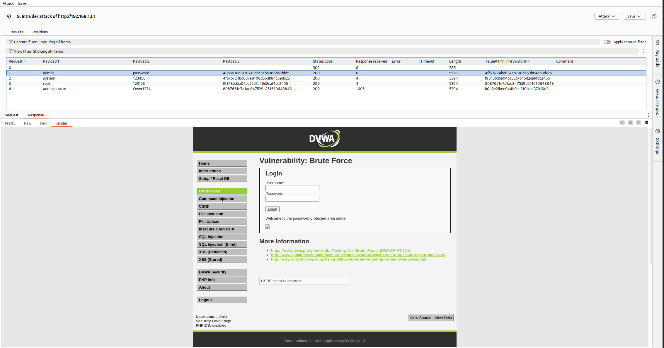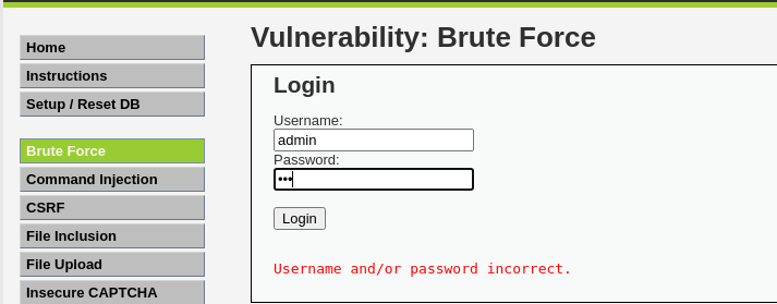 docker run -d -t -p 8888:80 sqreen/dvwaBrute Force