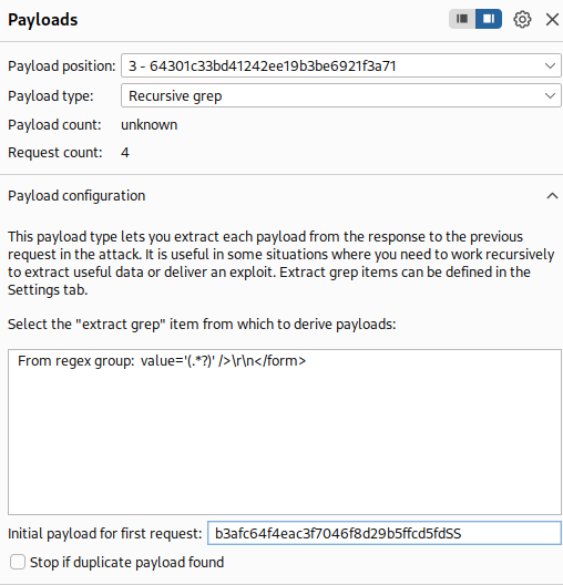 回到载荷,类型选择 Recursive grep,在下方填入我们刚刚获取到的 token,作为一开始的 token