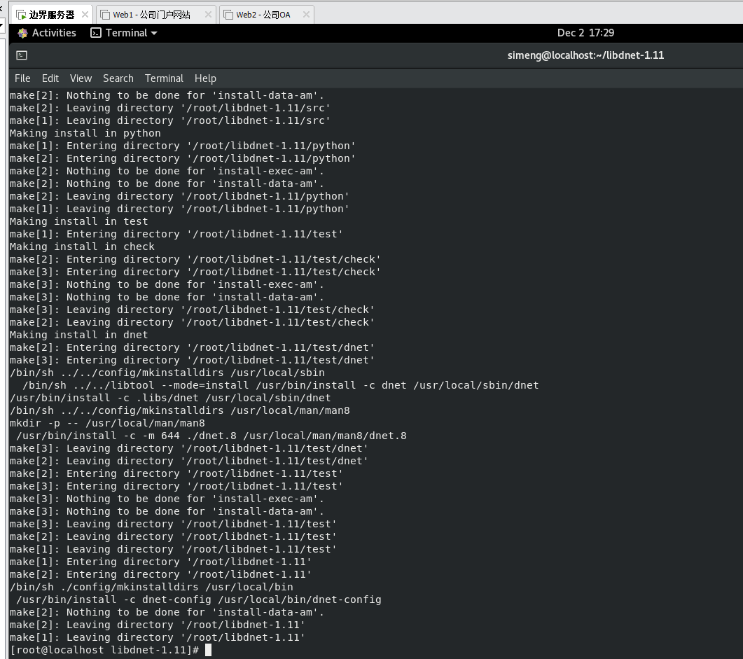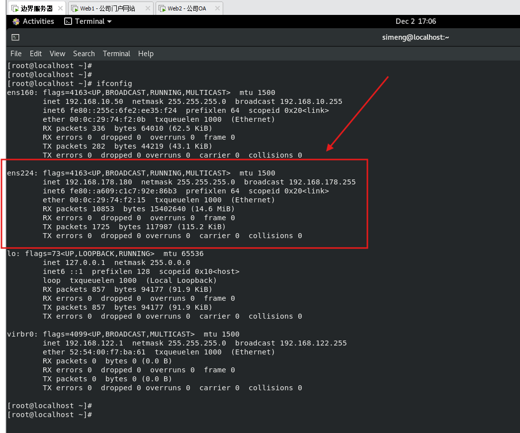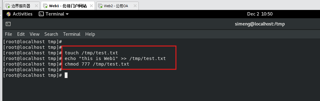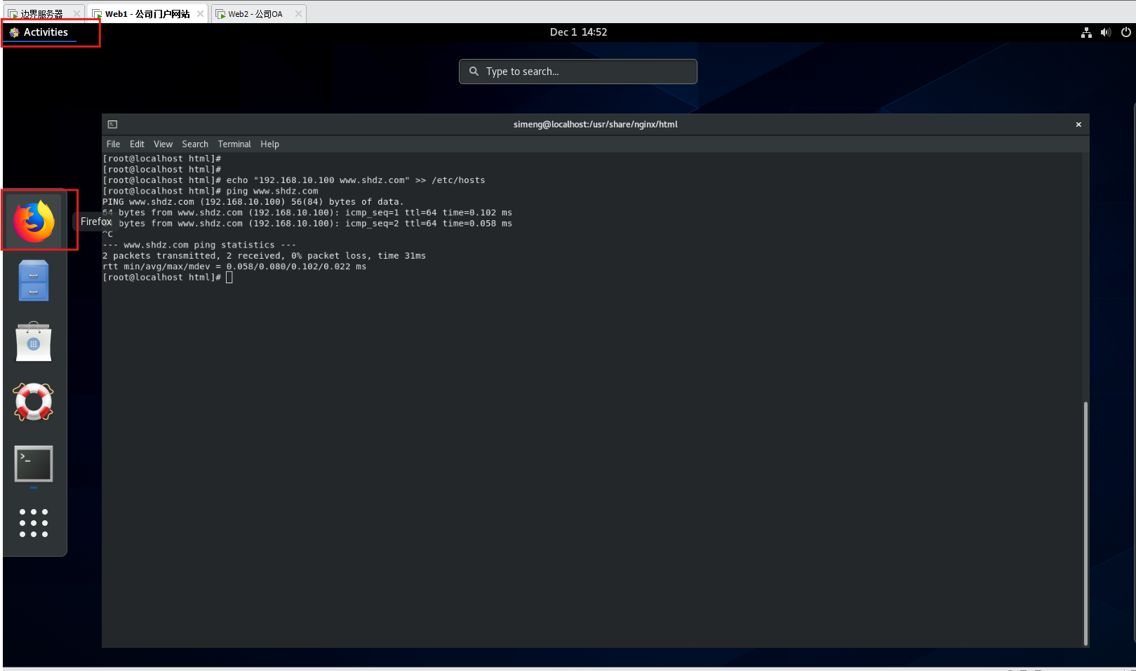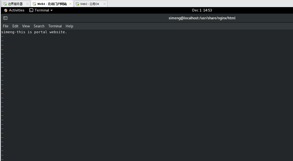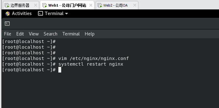 接下来的这些操作,均执行在“Web1-公司门户网站”虚拟机上,“Web2-公司OA”可以参考 Web1 来写
