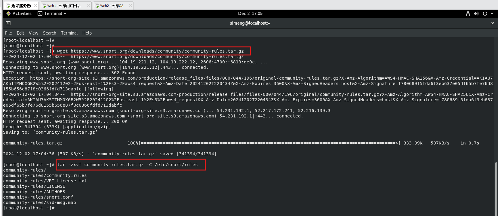 这里 wget 可能会出现问题,可以先将压缩包下载到本地然后上传到边界服务器上
