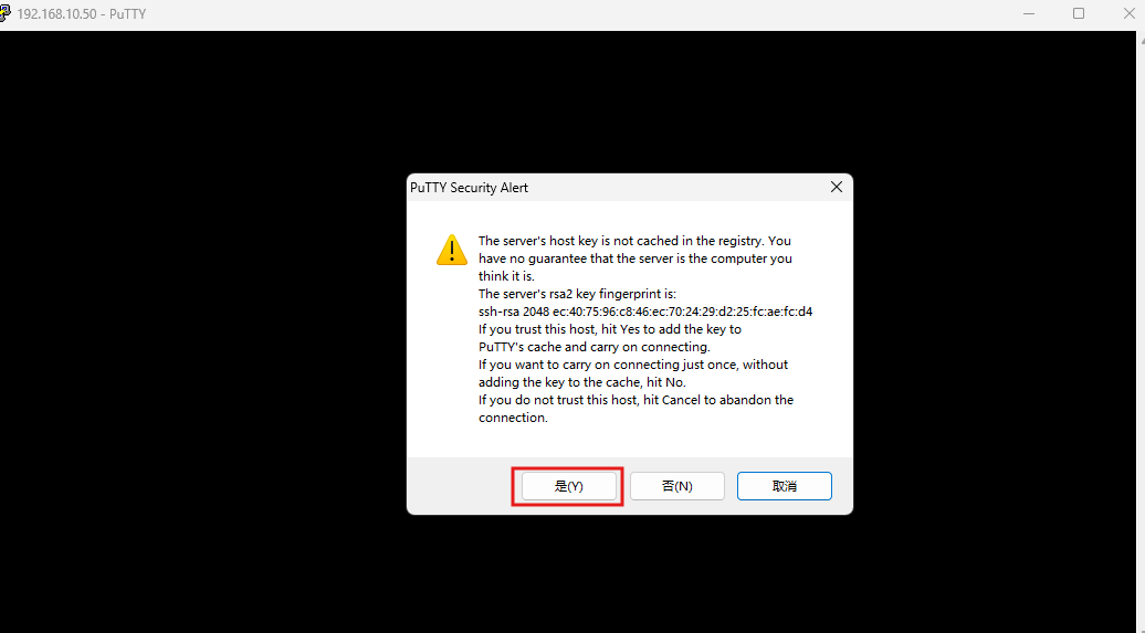 点击 ssh 之后会弹出这样的页面,点击是,第一次连接可能会黑屏,关掉重开就好了