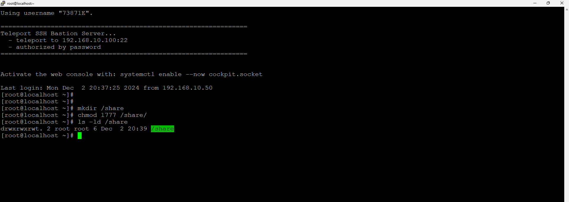 a、 使用运维帐号登录堡垒机后,配置内网的两台web服务器,在web1服务器创建一个/share目录,设置此目录下的文件仅创建者和root能删除,其它用户无法进行删除。在web2服务器上配置sudo,实现对如下用户的最小权限管理:(15分)